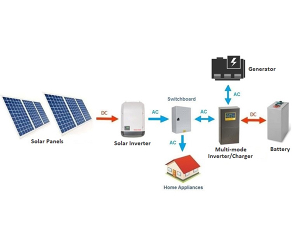 Off-grid systems work independently of the grid but have batteries which can store the solar power generated by the system. The system usually consists of solar panels, battery, charge controller, grid box, inverter, mounting structure and balance of systems. The panels store enough sunlight during the day and use the excess power generated in the night.
